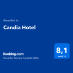 Candia Hotel in Athens city center offers facilities of high standards and top quality services in friendly prices. Lounges are airy and spacious; the rooms are elegantly decorated, with air conditioning and their own separate bathrooms. Many of them have views of the Acropolis through their balconies.